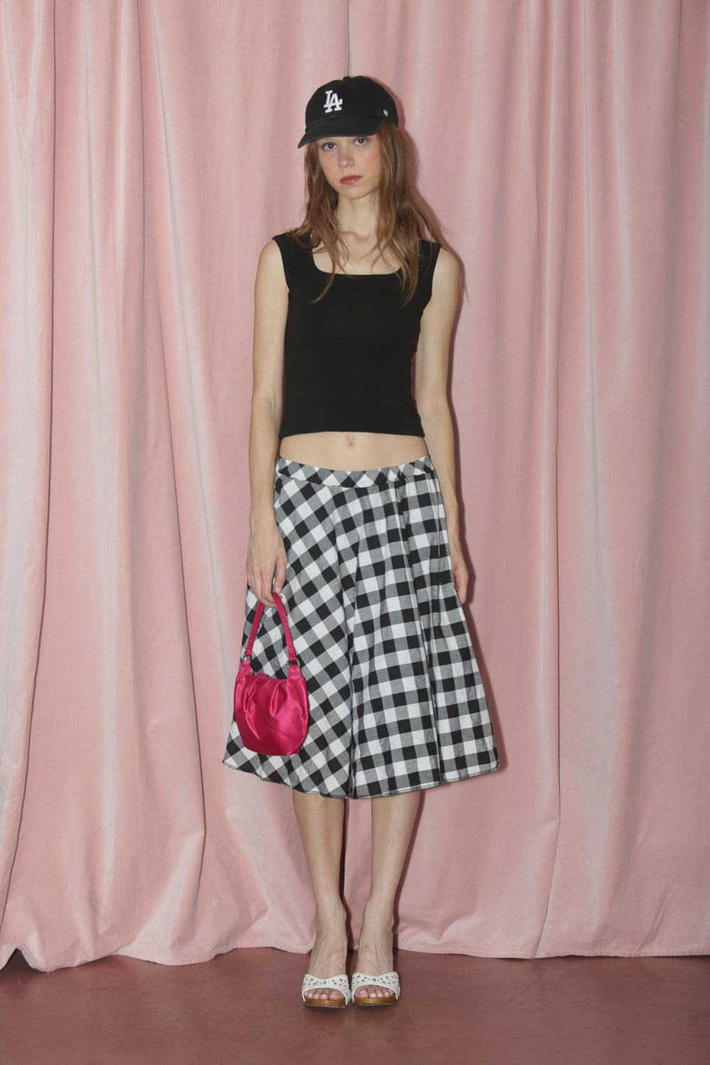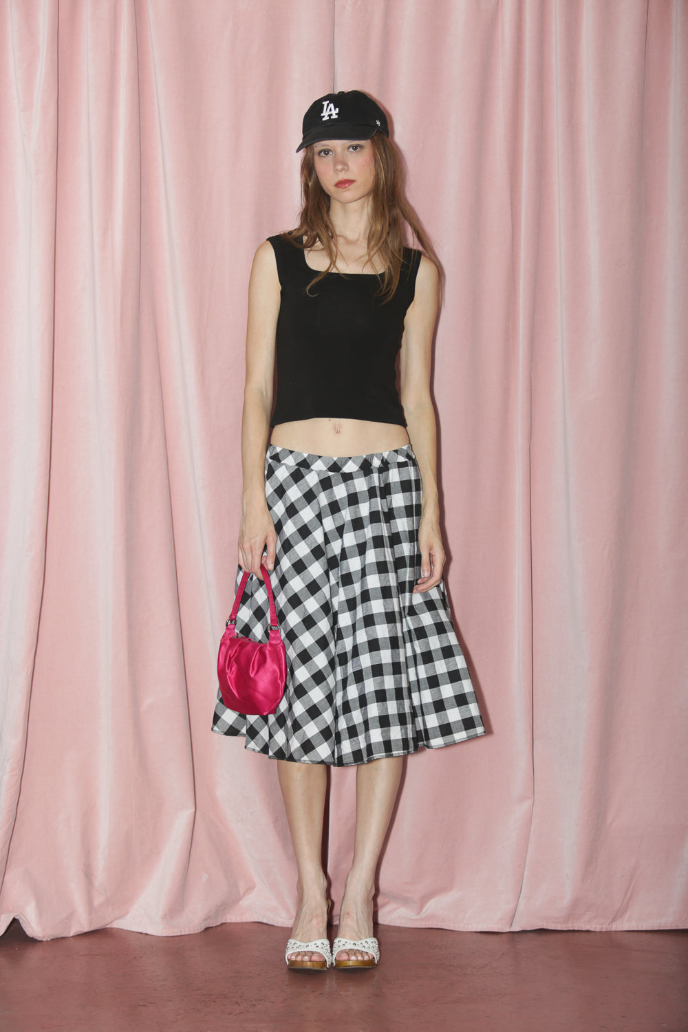 Vintage B&W gingham skirt. Elastic waist. Flowy fit. Twill lining.
