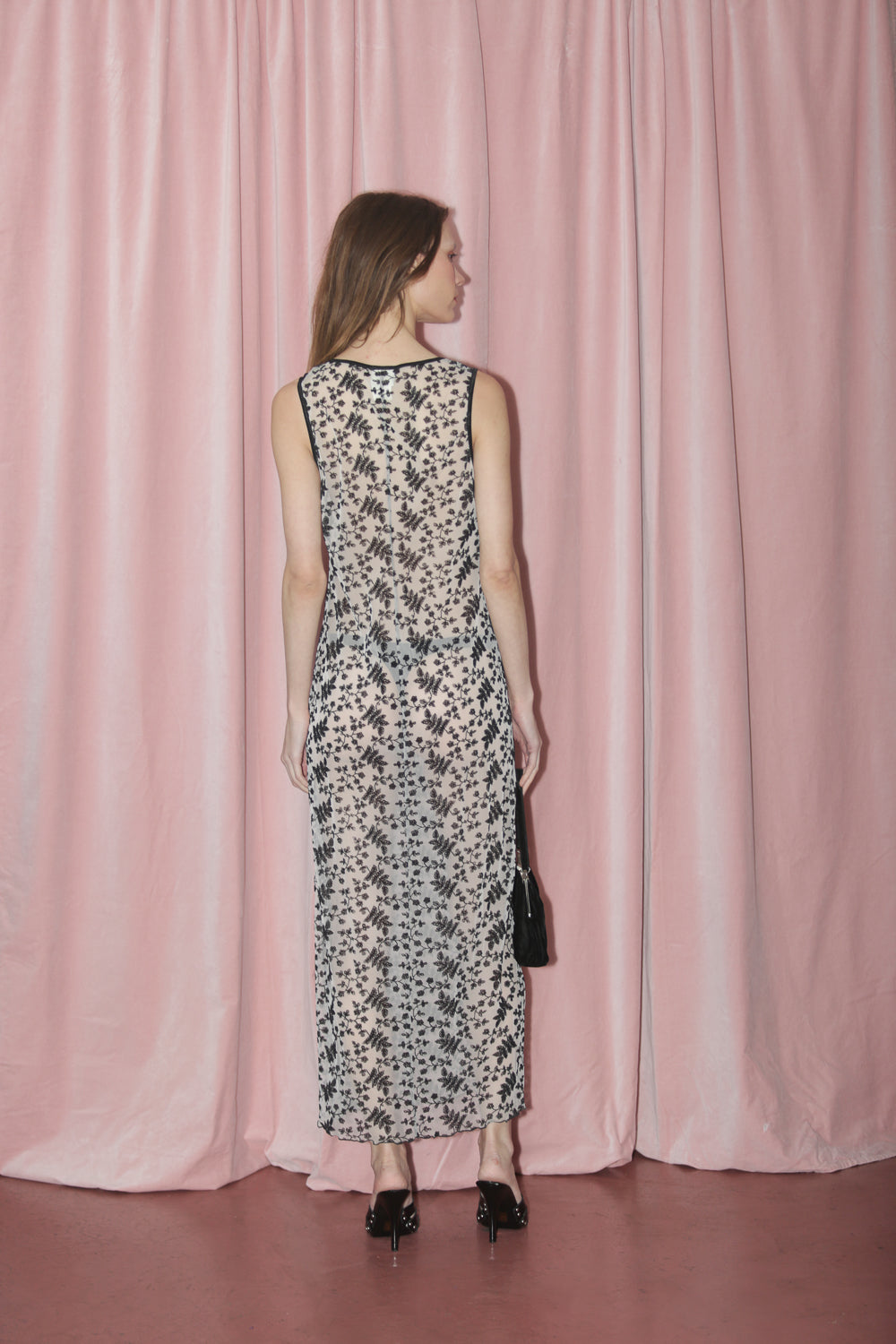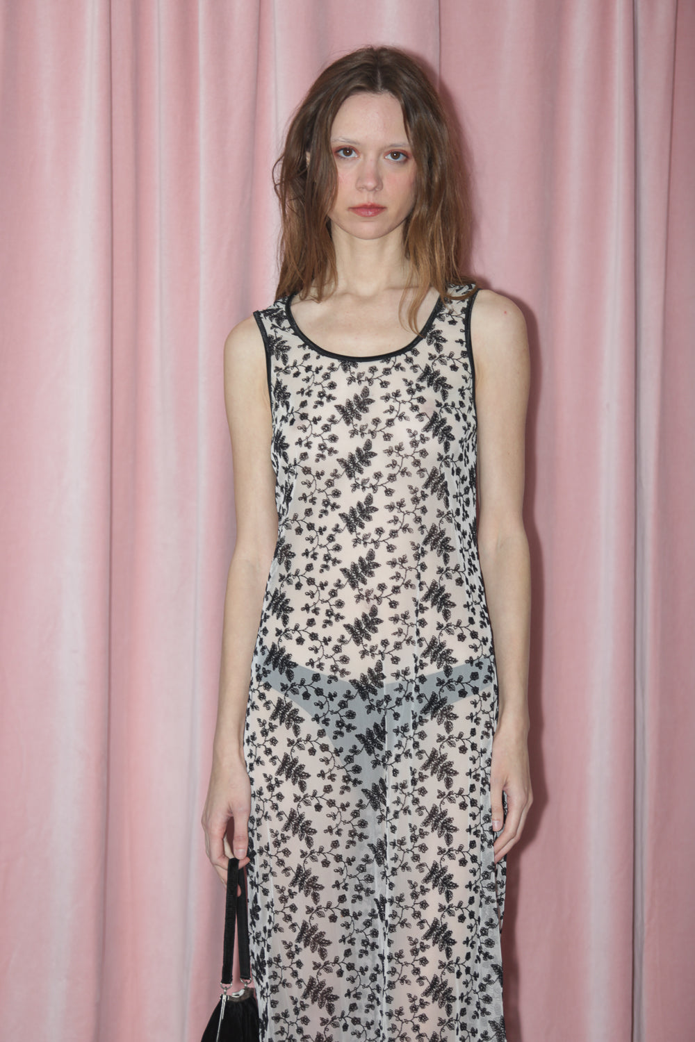Vintage black & white sheer dress with floral print detailing. Relaxed fit.