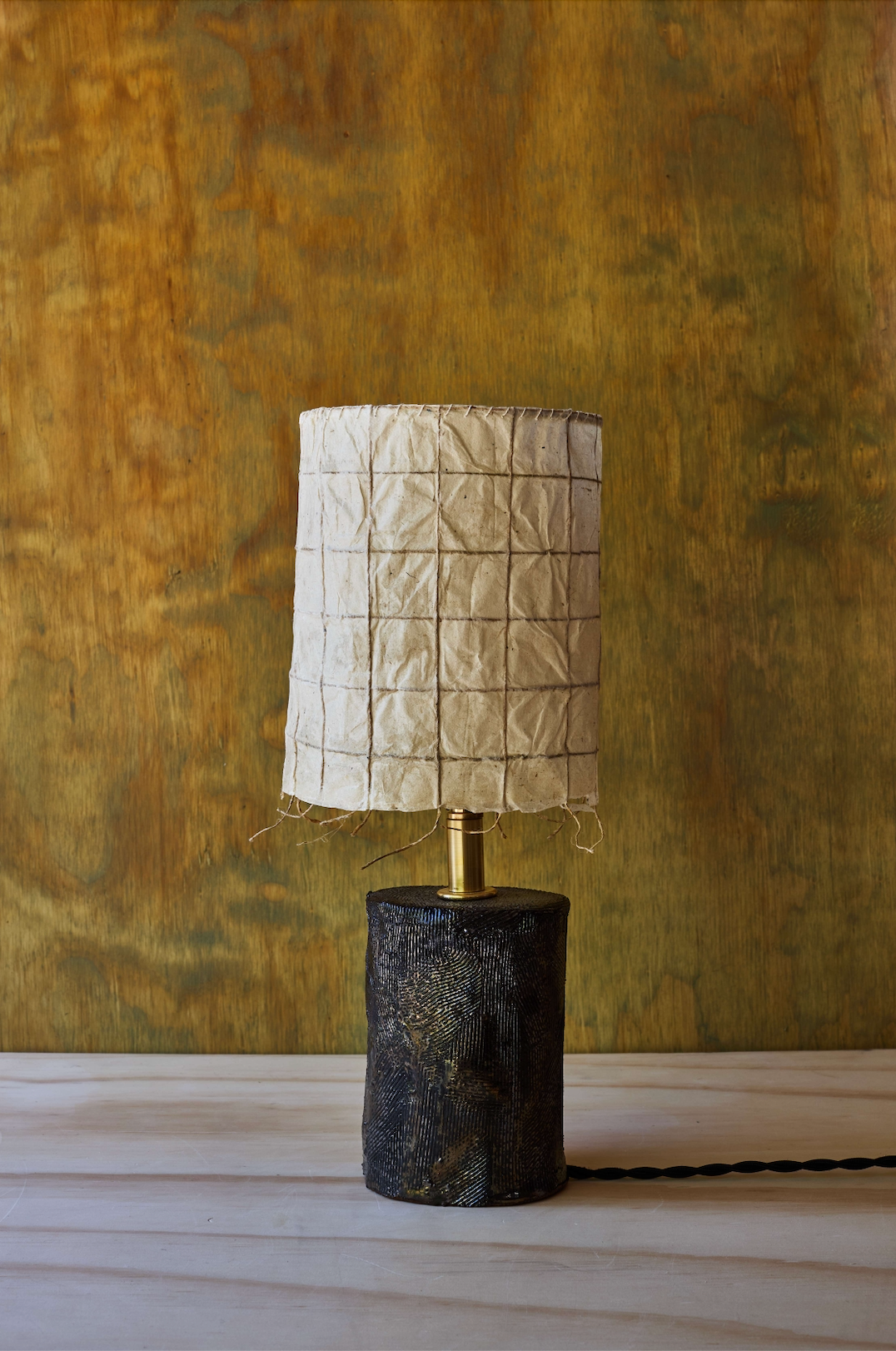 A new friend for your home. This lamp features a delicate handmade windowpane paper shade balanced by a sturdy ceramic base.