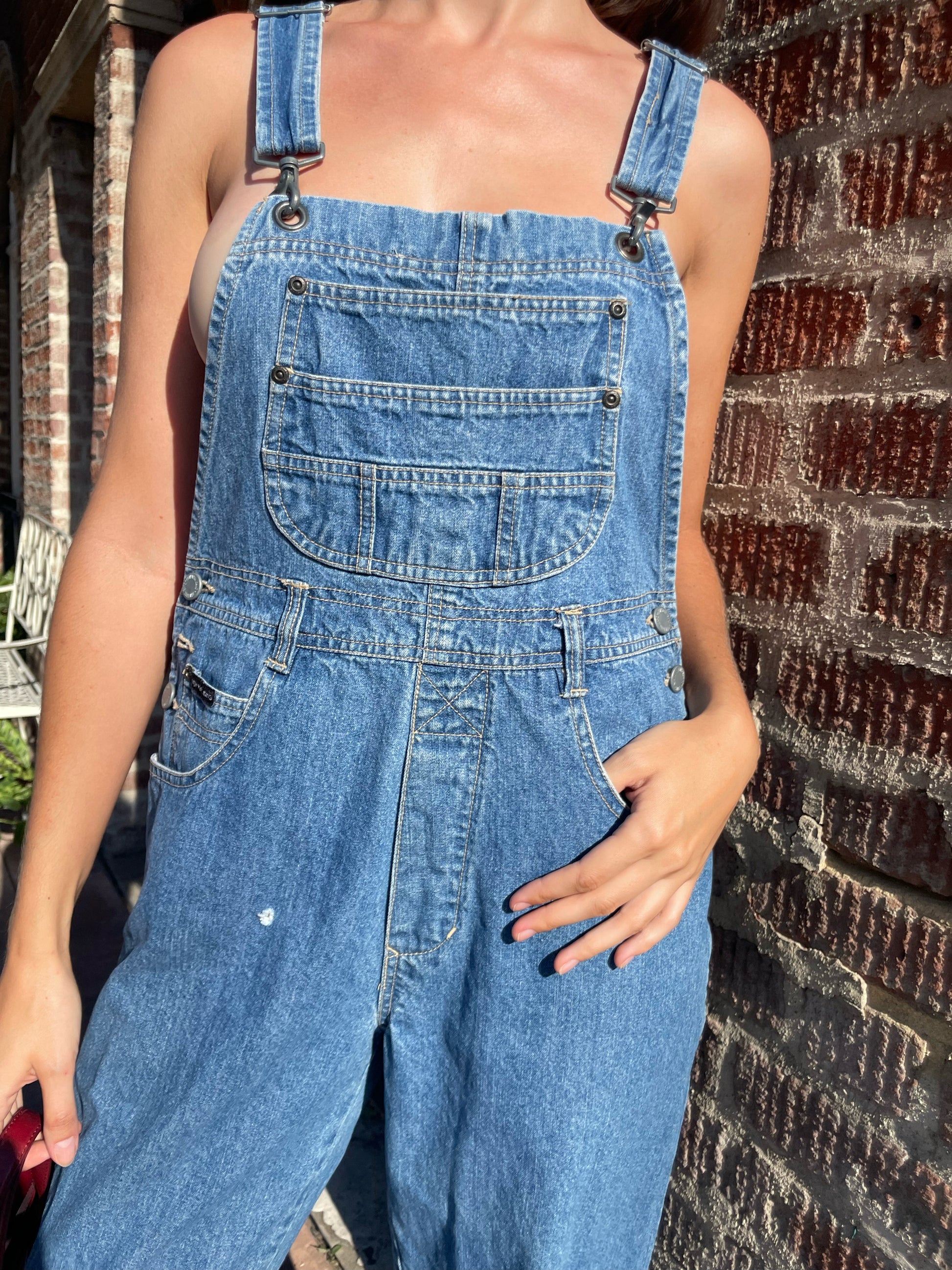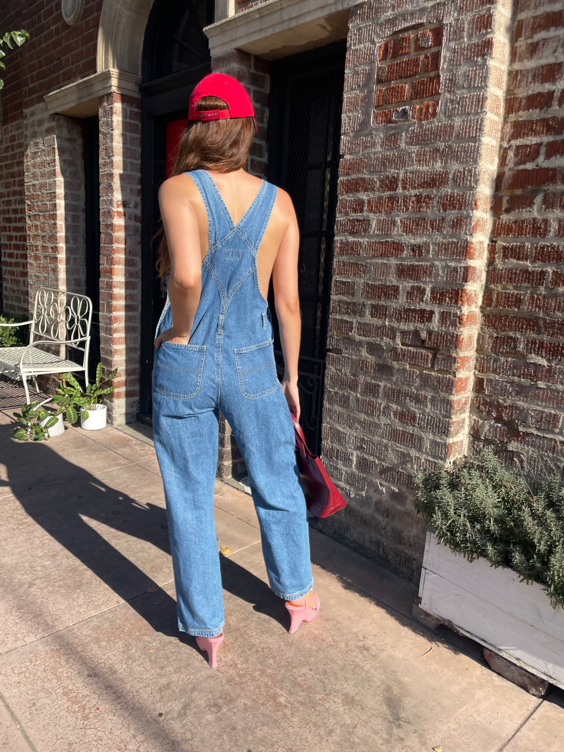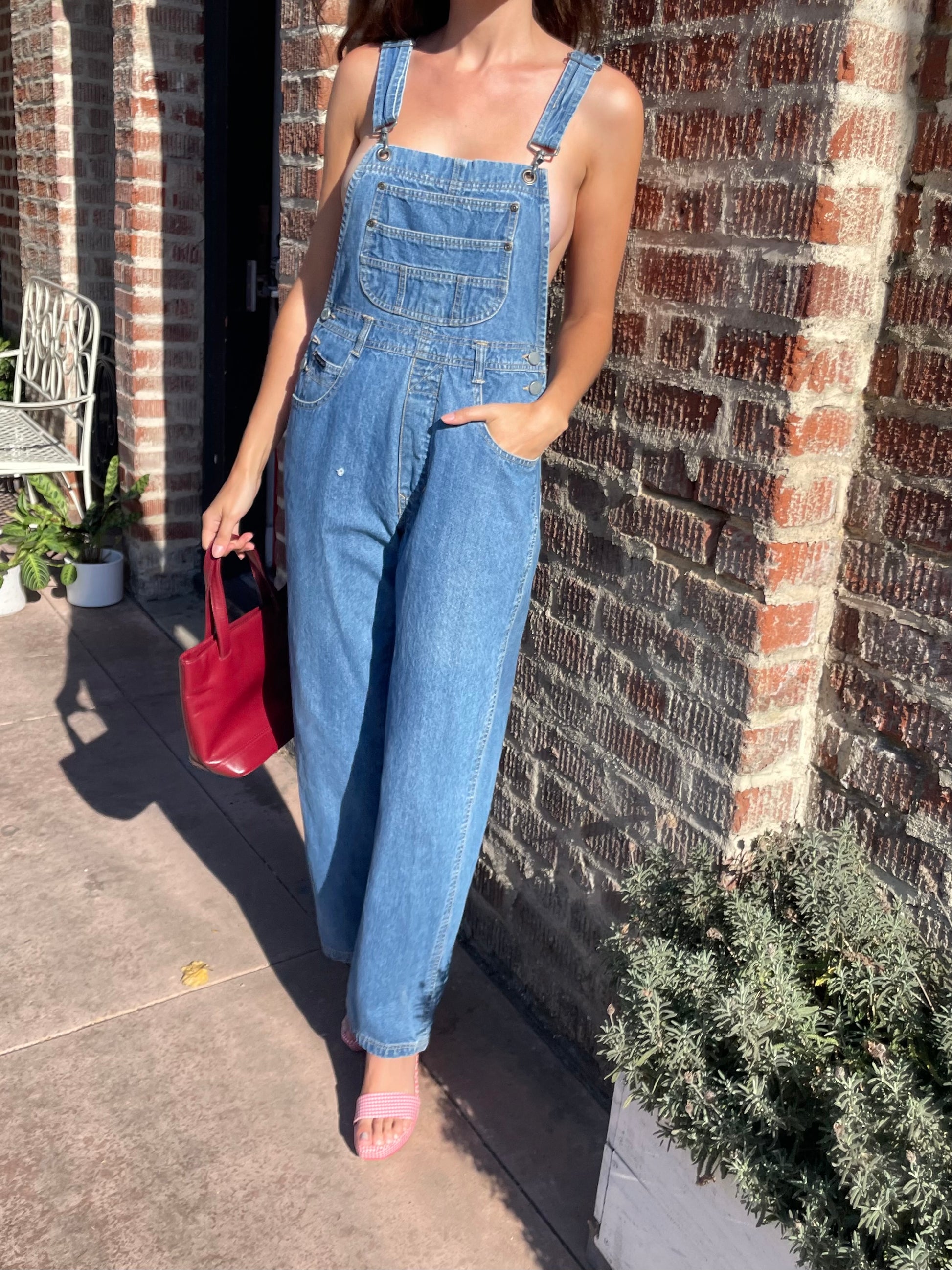 Vintage blue denim washed overalls. Relaxed fit with a front pockets, adjustable straps.
