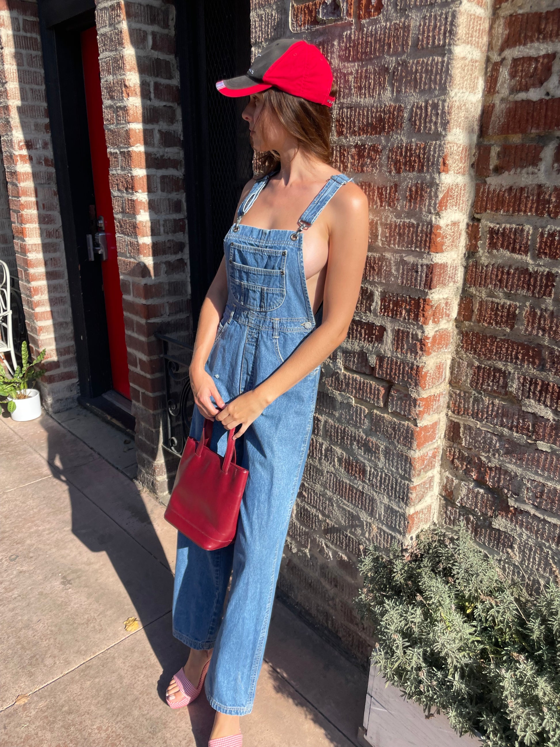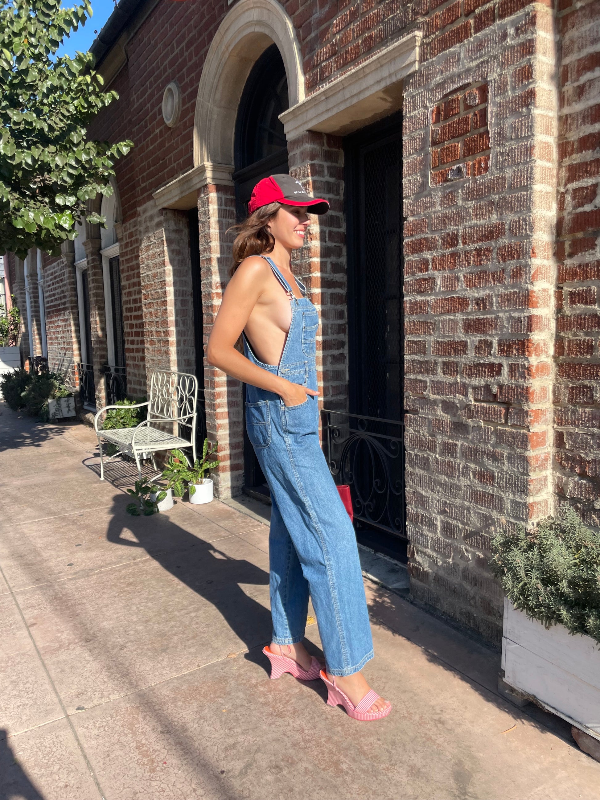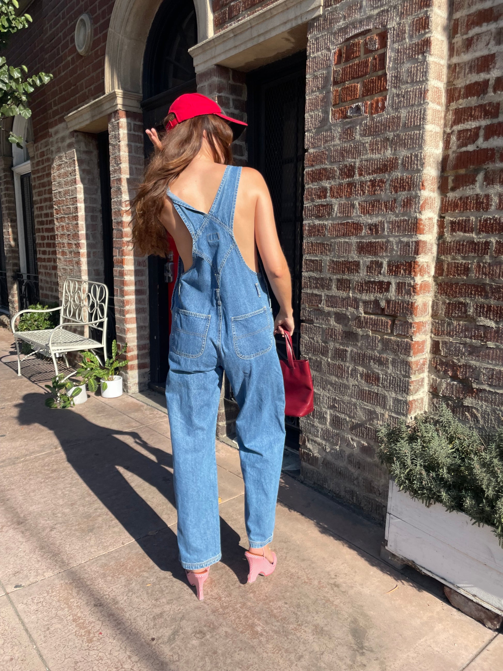 Vintage blue denim washed overalls. Relaxed fit with a front pockets, adjustable straps.